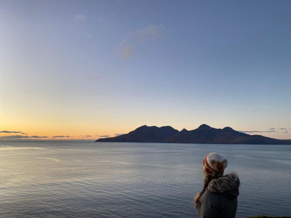 The Isle of Eigg is a magical place. It is one of of the Small Isles, on the West Coast of Scotland. This community owned island, with just 100 residents, has a lot of space for wildlife and rugged scenery – white tailed eagles and golden eagles nest in the cliffs, wild orchids grow in the meadows. It is well known for its white beaches, overlooking the mountains of the isle of Rum, as well as An Sgurr, the recognisable peak on the island, wildlife watching and for its vibrant community. Perhaps you will see dolphins or a minke whale as you approach on 12-mile ferry journey!