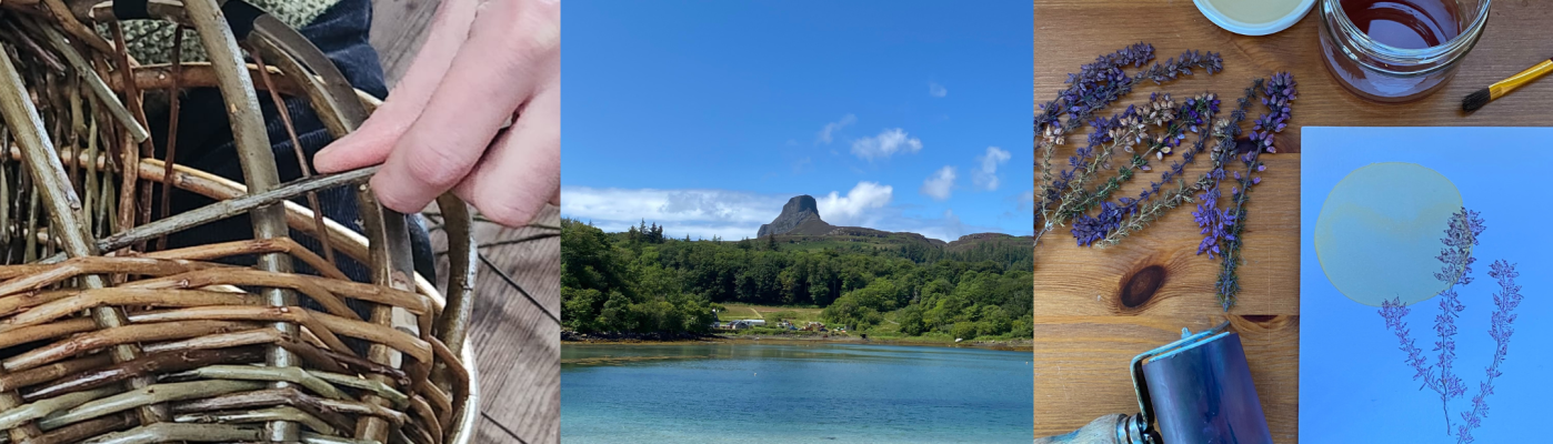 Following a wonderful Weave, Gather & Make in May 2025, Laurie King and basket makers from All About Willow, Catherine Davies and Pascal Carr, are doing it all again in 2026! From Thursday to Monday, this all-inclusive retreat will give you the opportunity to weave a basket from sustainably Eigg-grown willow, and take it for its very first foraging walk, all while exploring a beautiful Scottish island. You will be invited to make prints from leaves you gather on the foraging walk – make a foraging guide or a beautiful set of homemade cards.